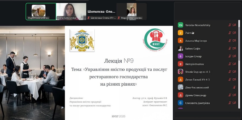 У межах вивчення дисципліни «Управління якістю продукції та послуг ресторанного господарства» за науково-методичної підтримки професора кафедри технології ресторанної і аюрведичної продукції Олега Кузьміна реалізовано міжуніверситетську освітню взаємодію, спрямовану на поглиблення фахових компетентностей здобувачів освіти та інтеграцію сучасних підходів до забезпечення якості і безпечності харчової продукції.