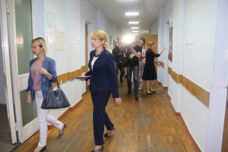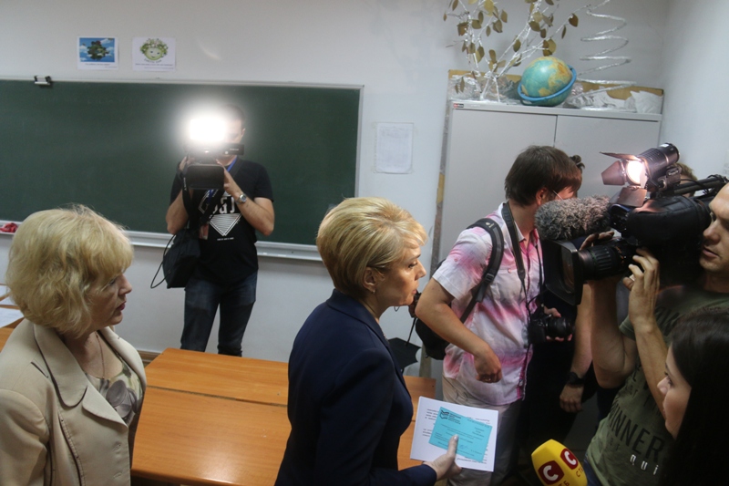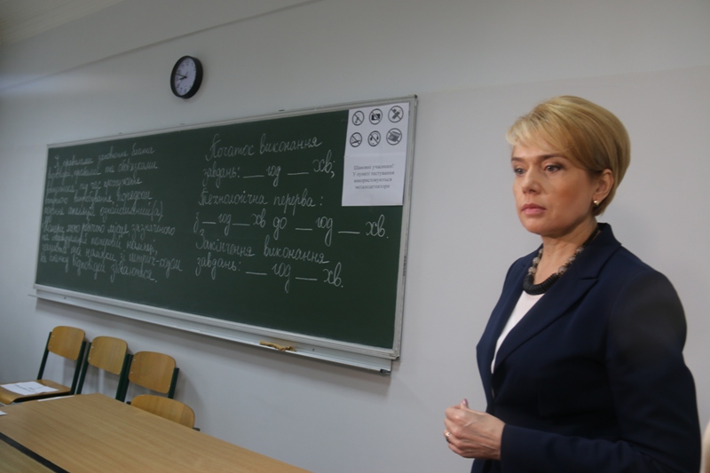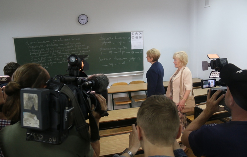Лілія Гриневич оглянула повністю готові до проведення іспиту аудиторії, звернула увагу на місця, виділені для зберігання речей вступників, побувала у приміщенні з опломбованим сейфом із завданнями. Міністр високо оцінила рівень організації проведення вступного іспиту. Також вона коротко поспілкувалася з керівництвом нашого вишу, відповіла на запитання журналістів і побажала вступникам успішної здачі ЗНО.
