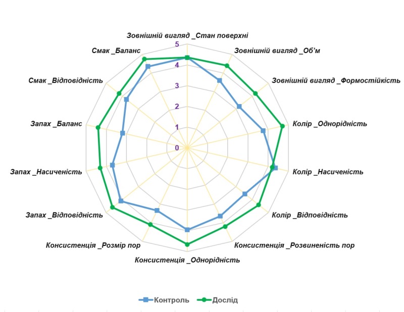 Цей підхід був успішно реалізований під час лабораторного заняття з дисципліни «Інновації в ресторанному бізнесі» (викладачка – професорка Тетяна Сильчук) і практичного заняття з дисципліни «Менеджмент якості та культура харчової безпеки в закладах сфери гостинності» (викладач – доцент В’ячеслав Губеня). Споживчі показники якості модельних зразків інноваційних хлібобулочних виробів, вироблених під час лабораторного заняття, були кількісно оцінені на практичному занятті. Головні дегустатори – самі здобувачі освіти.