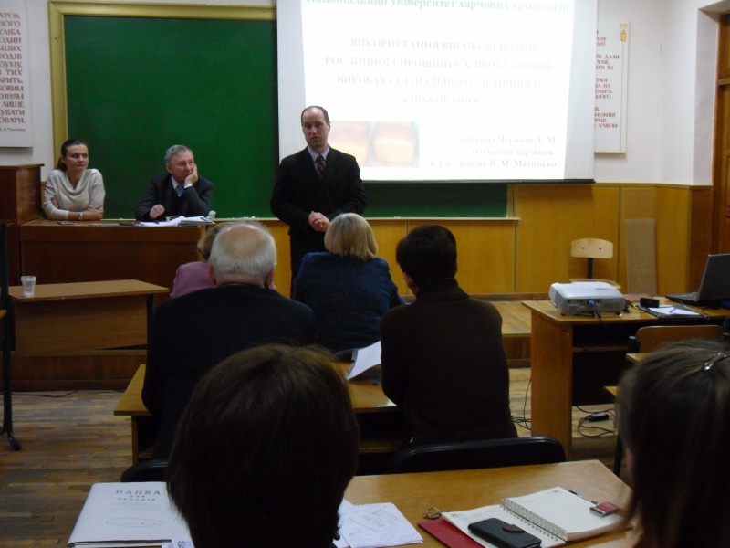 На кафедрі технології хлібопекарських і кондитерських виробів відбувся попередній захист дисертаційної роботи «Використання високобілкової рослинної сировини у хлібобулочних виробах спеціального дієтичного споживання» аспірантки Людмили Черниш. Науковий керівник – докторант кафедри Валерій Махинько.