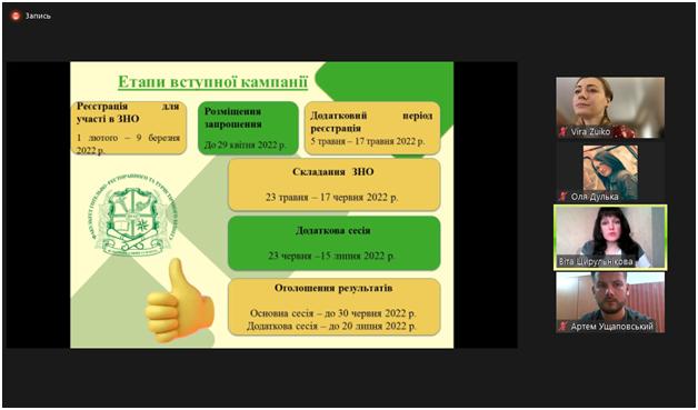 Компетентно і ґрунтовно про майбутню вступну кампанію-2022 і цьогорічні правила прийому розповіла в.о. деканки і головчиня відбіркової комісії факультету Віта Цирульнікова, яка і відповіла на незліченні, абсолютно різні питання майбутніх вступників.