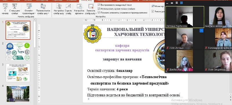 5 квітня доцентка кафедри експертизи харчових продуктів Анастасія Чорна зустрілася в онлайн-форматі зі здобувачами спеціальності 181 «Харчові технології» Вінницького фахового коледжу НУХТ.