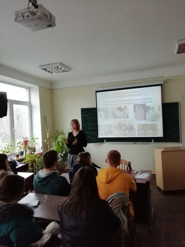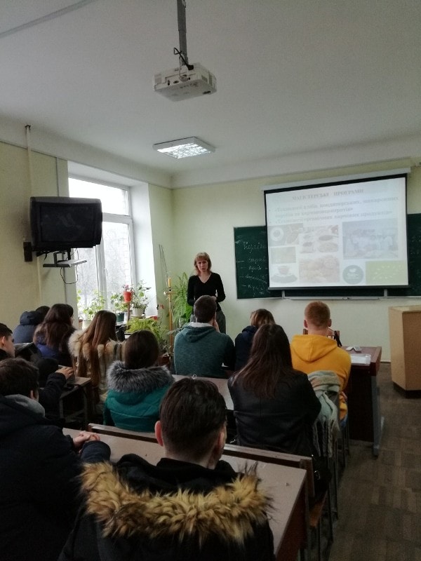 Асистент кафедри технології хлібопекарських і кондитерських виробів Людмила Бурченко та доцент кафедри процесів і апаратів харчових виробництв Юлія Запорожець відвідали Коледж ресторанного господарства, де зустрілися зі студентами, які навчаються за спеціальністю «Харчові технології» та «Готельно-ресторанна справа».