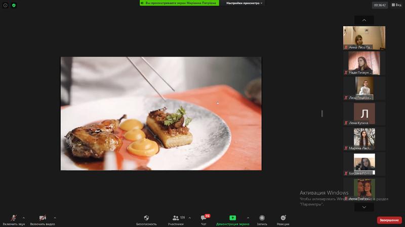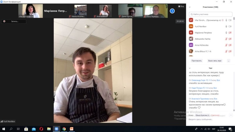 У режимі Zoom-конференції з відомого гірськолижного курорту Земмерінг в Австрії зі здобувачами спілкувався професіонал міжнародного рівня, шеф-кухар «SportHotel am Semmering» і бренд-шеф «Zauberbar Semmering Liechtensteinhaus» Юрій Новіков.