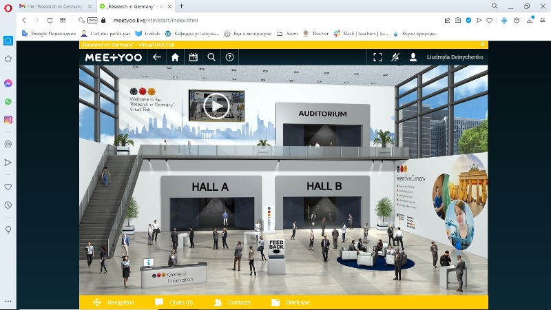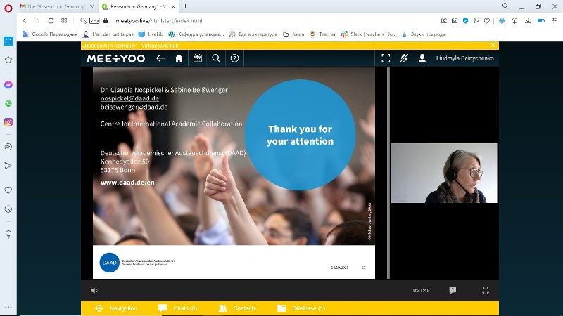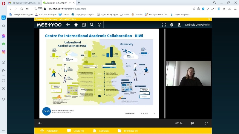Під час івенту викладачі кафедри мали змогу відвідати аудиторіум і послухати презентації представників німецьких вишів щодо можливостей міжнародної співпраці та спільних наукових проєктів, поспілкуватися з представниками міжнародних відділів біля віртуальних стендів і долучитися до віртуальних екскурсій німецькими університетами.
