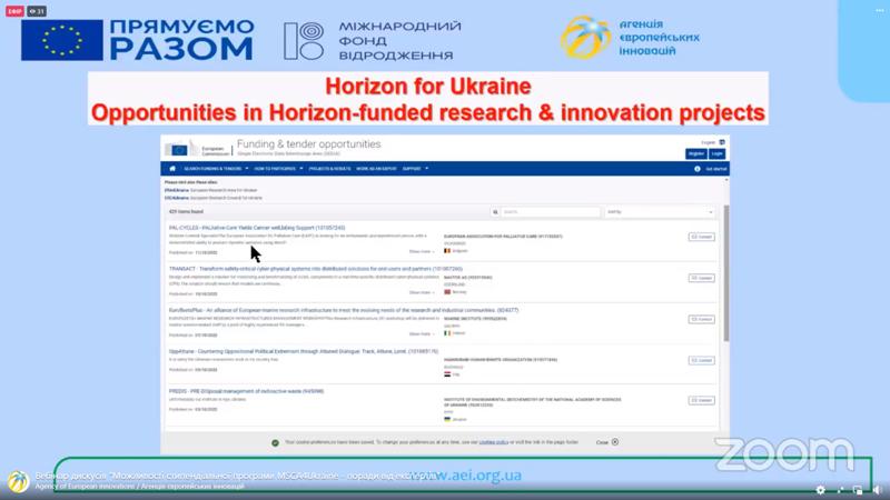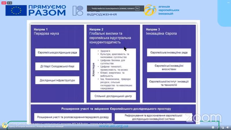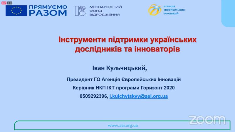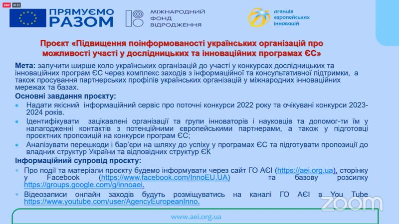 Спікери звернули увагу науковців на базові умови для подання заявки на участь у програмі, терміни подання, часові та фінансові параметри заявок, структуру заявки, критерії оцінювання та надали практичні поради.