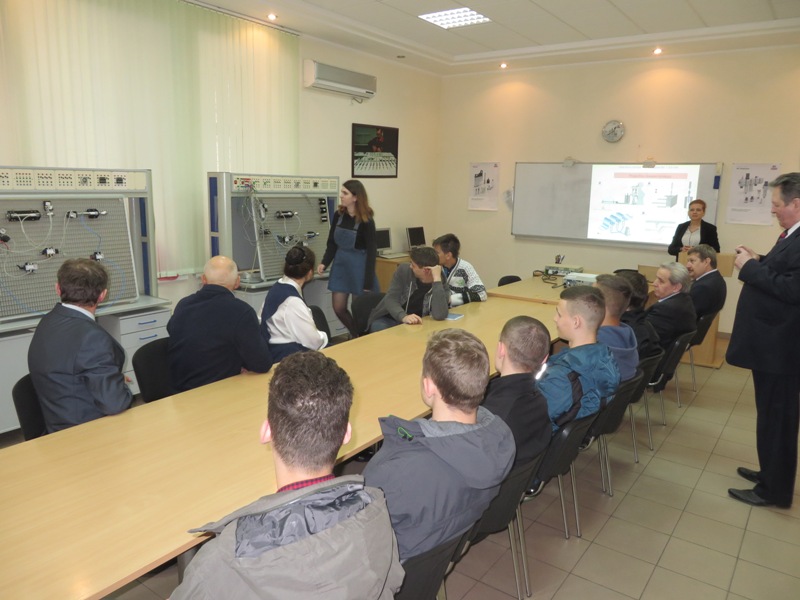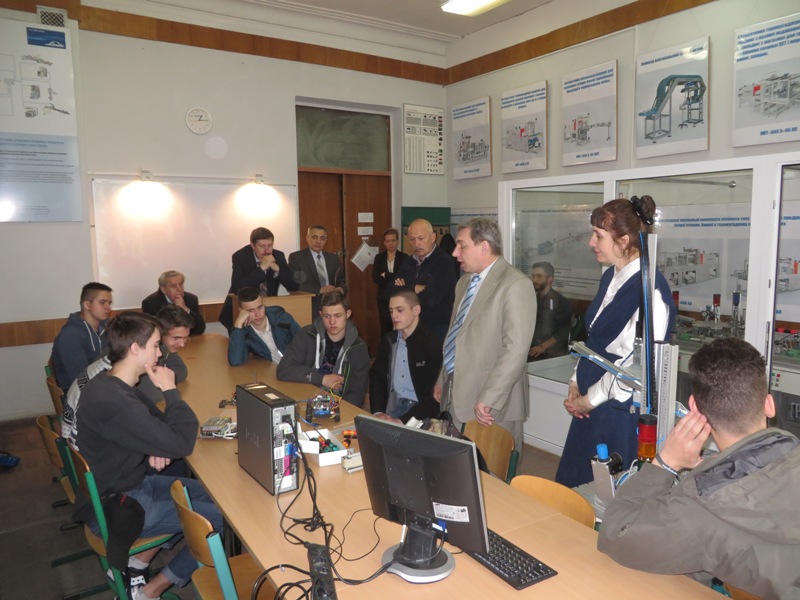 На другому етапі зустрічі гості познайомилися із матеріально-технічною базою кафедри, зокрема лабораторією пневматики та мехатроніки. Доцент Людмила Кривопляс-Володіна разом зі студенткою третього курсу Катериною Рівною продемонстрували можливості лабораторії пневматики. Студенти коледжу спробували свої сили у збиранні простих пневматичних схем. Після цього гості побачили лабораторію мехатроніки, де професор Микола Якимчук разом із магістрантом першого року навчання Володимиром Десюком продемонстрували модульні робототехнічні станції та роботи на основі Arduino. Особливу зацікавленість у присутніх викликала можливість програмування мікроконтролерів на основі Arduino.