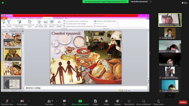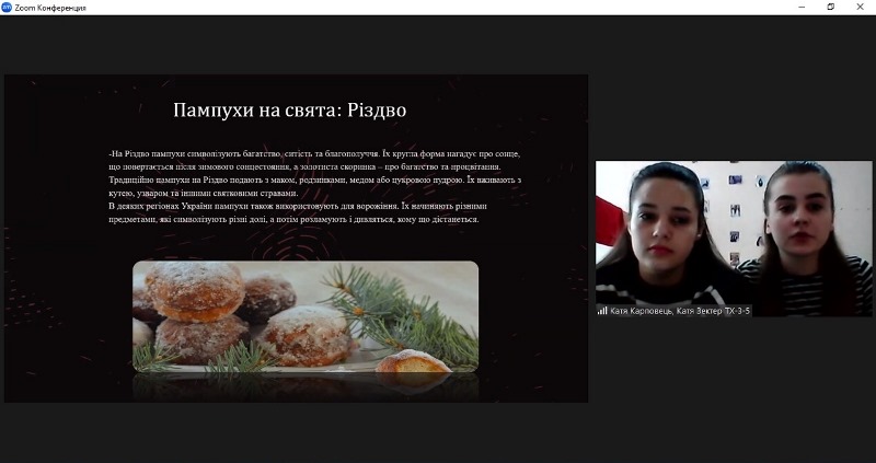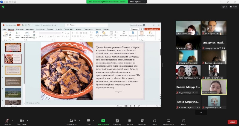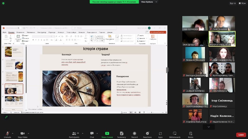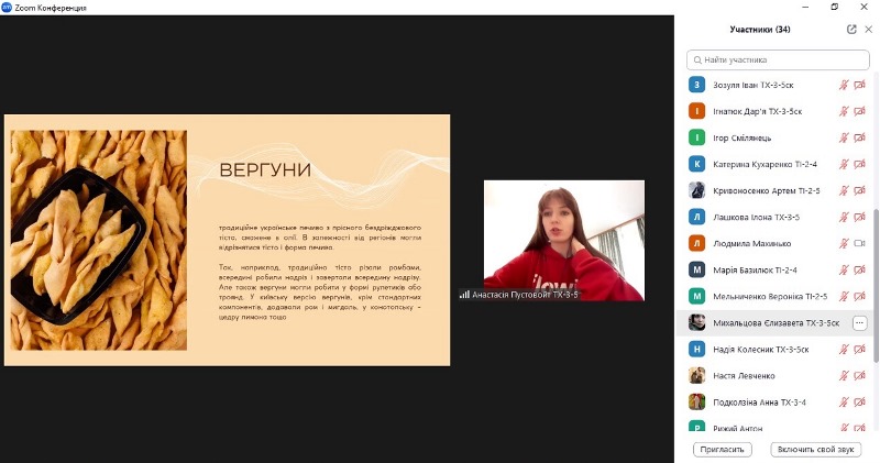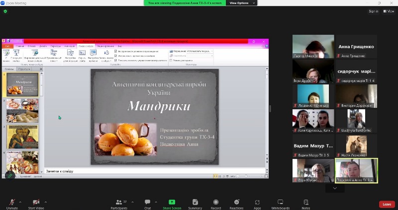 Традиційно кожного року навесні наставниці академічних груп кафедри технології хлібопекарських і кондитерських виробів разом зі здобувачами 1-3 курсів Навчально-наукового інституту харчових технологій проводять тематичні заходи. Цього року студенти підготували яскраві і змістовні презентації, присвячені українським автентичним солодощам.