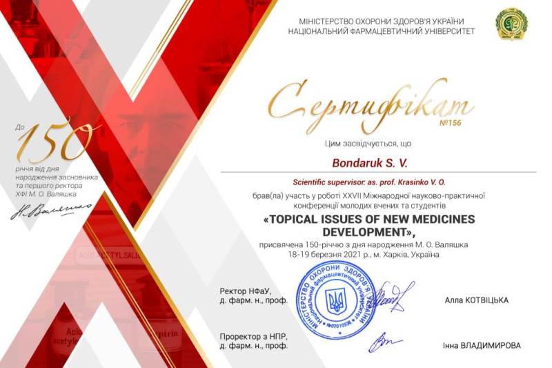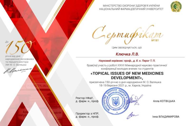 Окрім можливості апробації результатів роботи, учасники конференції та їхні наукові керівники також були відзначені іменними сертифікатами. Наші науковці вдячні оргкомітету конференції за можливість долучитися до світу промислової фармації!