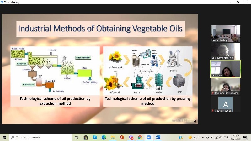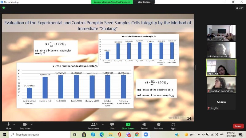 Робота виконується згідно з українсько-австрійським проєктом «Використання ферментативних методів для сталого виробництва рослинної олії». Представлена аспіранткою презентація продемонструвала великий обсяг експериментальної роботи та цікаві одержані результати.