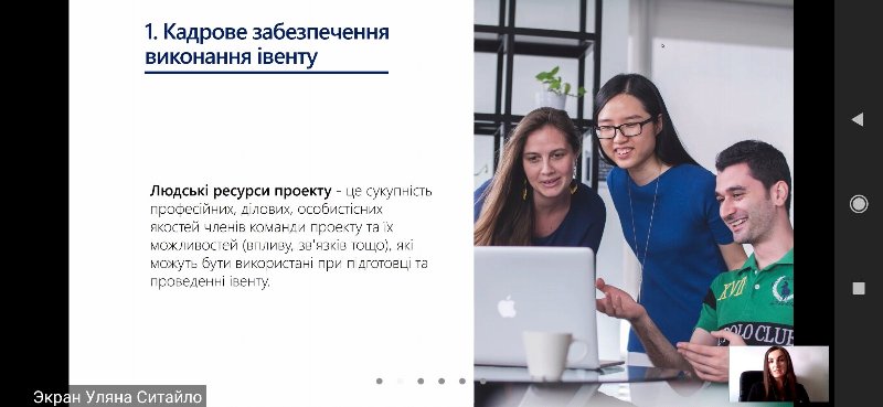 6 квітня 2021 року в онлайн-форматі відбулася відкрита лекція «Підбір постачальників послуг» старшої викладачки кафедри туристичного та готельного бізнесу Уляни Ситайло з дисципліни «Івент-менеджмент» для здобувачів 3 курсу спеціальності 242 «Туризм».