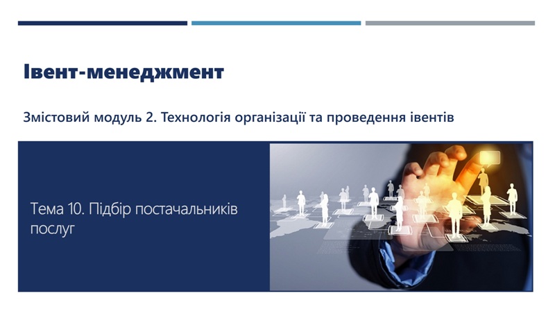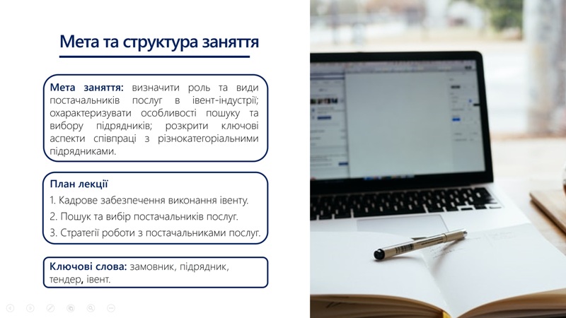Основні питання розглянуті під час лекції – роль кадрового забезпечення в івент-індустрії, особливості пошуку та вибору постачальників послуг, а також ключові аспекти співпраці з різнокатегорійними підрядниками.