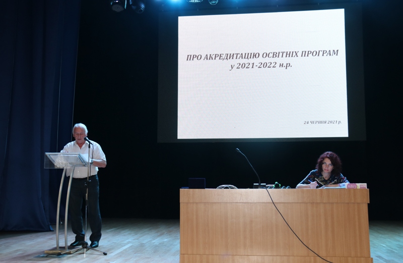Про акредитацію освітніх програм у 2021-2022 н.р. доповідали Володимир Яровий і Ігор Житнецький. Доповідачі зазначили, що у 2021-2022 навчальному році в університеті функціонуватимуть 82 освітні програми й надали інформацію за результатами проведених Національним агентством із забезпечення якості вищої освіти акредитацій освітніх програм НУХТ у 2021 році та проведеному загальноуніверситетському моніторингу по розробленому проєкту плану заходів внутрішньої системи забезпечення якості вищої освіти, що передбачає реагування внутрішньої системи забезпечення якості вищої освіти на виявлені сильні і слабкі сторони освітньої діяльності, та з метою підготовки до акредитації освітніх програм у 2021-2022 навчальному році.