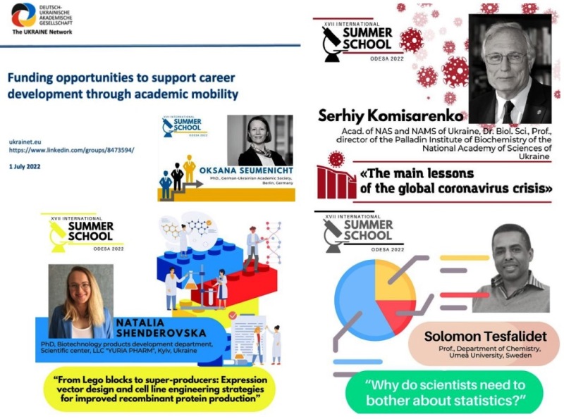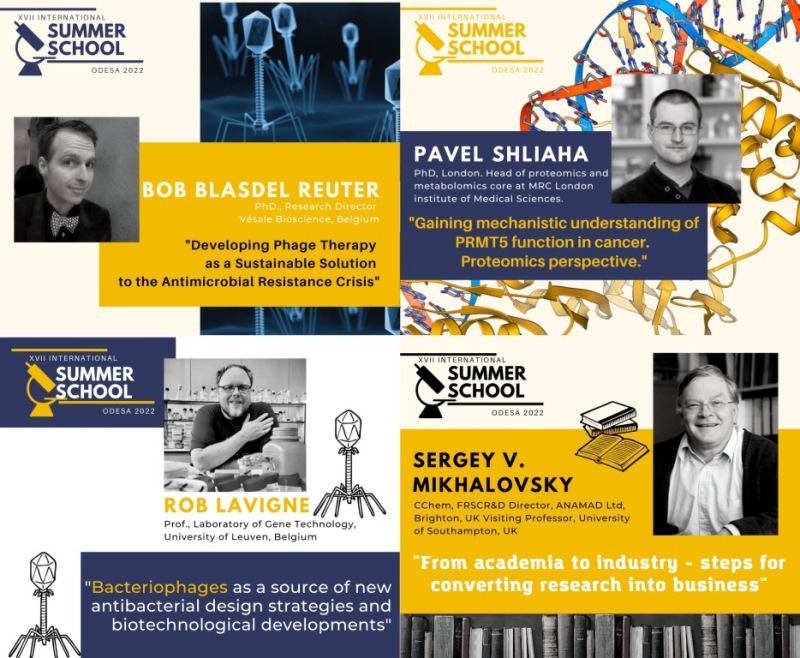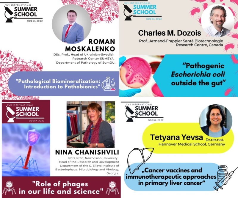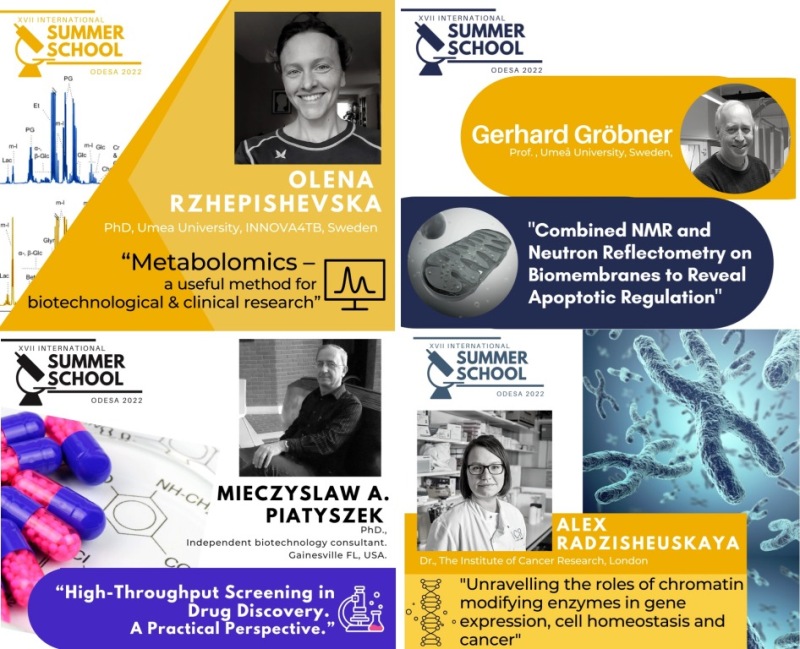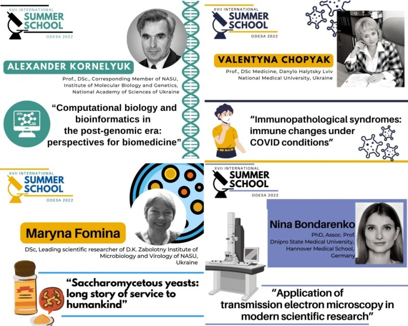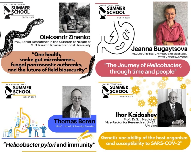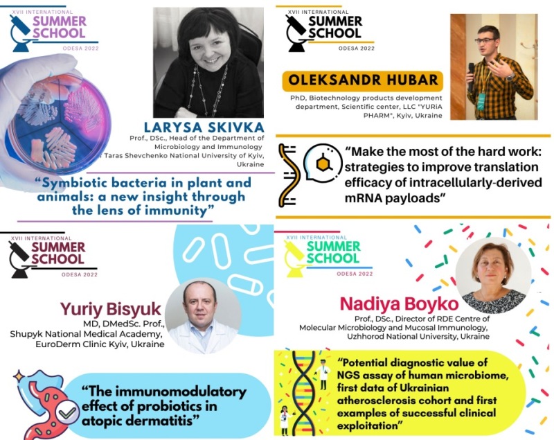 Уявити всі численні наукові звання та досягнення спікерів Summer School просто не виявляється можливим: від члена Королівського хімічного товариства, віце-президента Грузинської асоціації загальної та прикладної мікробіології, президента Українського товариства імунології, алергії та імунореабілітації до біотехнолога фармацевтичної компанії «Юрія-Фарм» та патологоанатома з м. Дніпро.