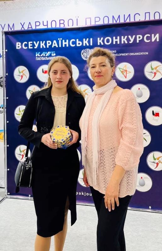 Наша переможниця конкурсів «Українська зірка упаковки» та «Упаковка майбутнього», здобувачка четвертого курсу освітньої програми «Комп’ютерні технології дизайну і виготовлення упаковки» Євгенія Бабенко отримала нагороду за розроблення картонної упаковки для цукерок «Любіть Україну». Натхненниця і наукова керівниця Євгенії – доцентка кафедри машин і апаратів харчових і фармацевтичних виробництв Наталія Кулик.