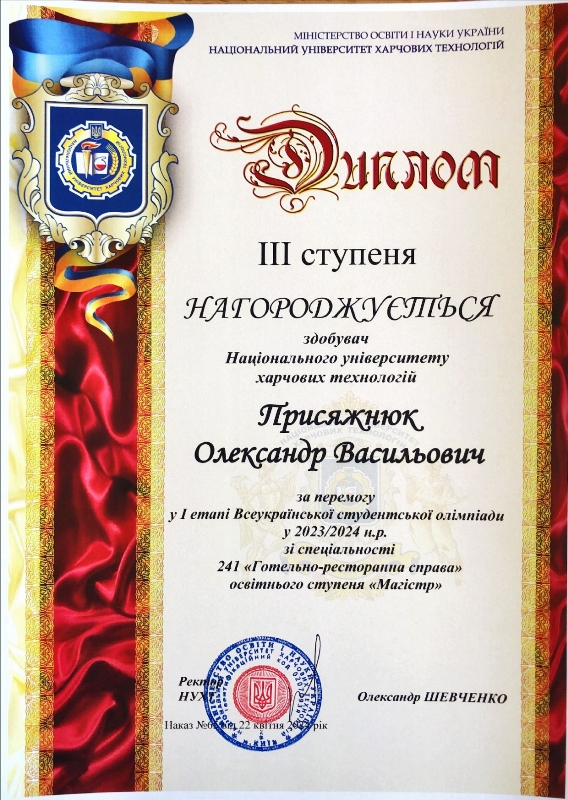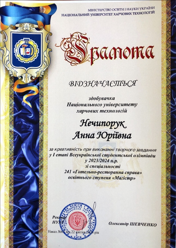 З метою підвищення якості підготовки кваліфікованих фахівців, пошуку обдарованої студентської молоді, стимулювання її творчої праці, активізації науково-дослідної роботи студентів університету на кафедрі готельно-ресторанної справи відбувся I етап Всеукраїнської студентської олімпіади зі спеціальності 241 «Готельно-ресторанна справа».