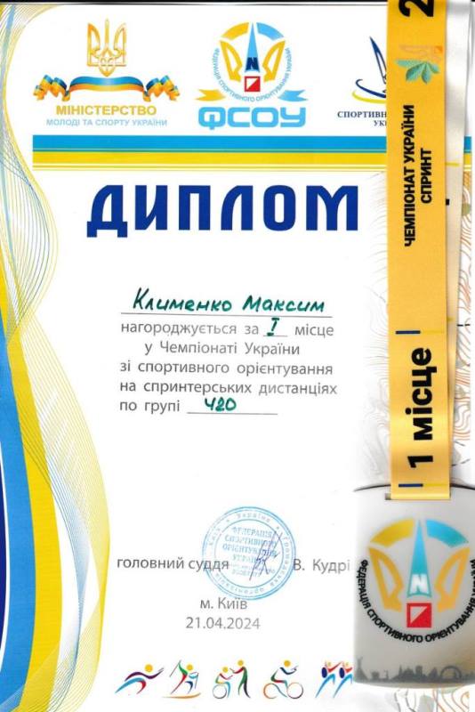 Здобувач другого курсу факультету біотехнології та екологічного контролю Максим Клименко (група БТ-2-1) у складі команди «Sever» посів І місце в особистому заліку на спринті по групі Ч20.