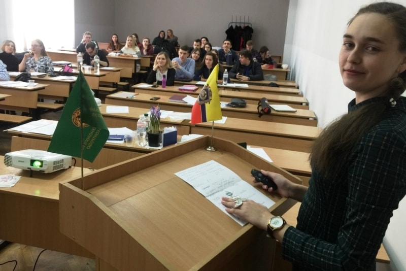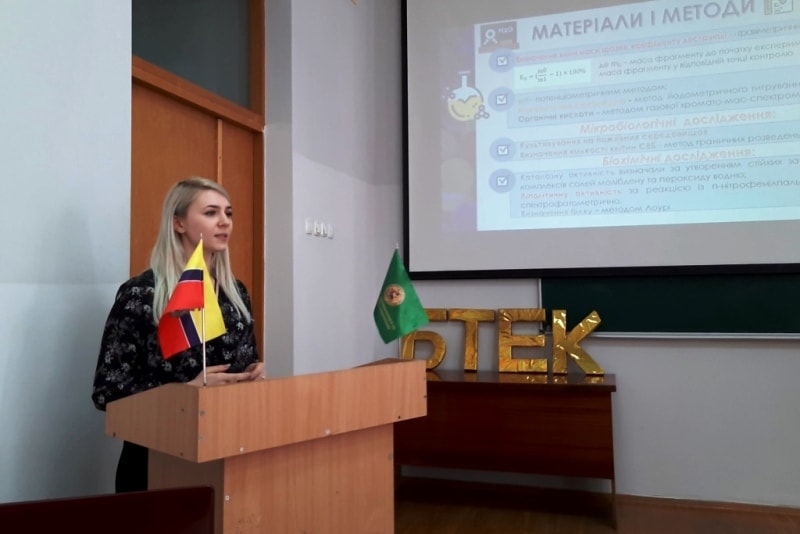 Естафету прийняла ще одна гордість кафедри – Анна Бондаренко, яка представила комісії результати своєї роботи «Роль сульфатвідновлювальних бактерій в біодеструкції полімерних і гумотехнічних матеріалів», виконаної під керівництвом к.б.н., доцента Людмили Буценко та за консультативної допомоги к.б.н. Дарини Абдуліної на базі відділу загальної та ґрунтової мікробіології Інституту мікробіології і вірусології ім. Д.К. Заболотного НАН України.