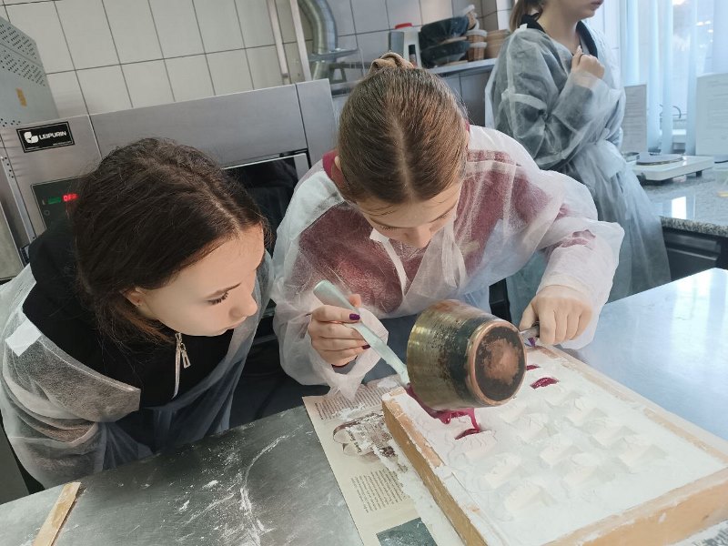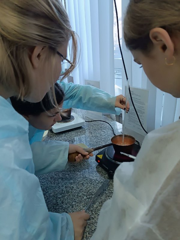 Наступний день ліцеїсти знову провели на кафедрі технології хлібопекарських і кондитерських виробів, занурюючись у світ карамелі і цукерок. Особливості технологій, схожість і відмінності, вплив різних факторів на якість готового продукту – всі аспекти були детально вивчені на лекційному занятті. Та, надихаючись отриманими знаннями, гості вперше отримували справжні вироби у лабораторних умовах разом із фахівчинею кондитерської справи Оленою Кохан.