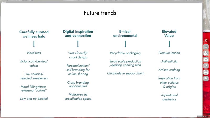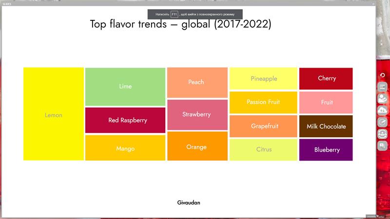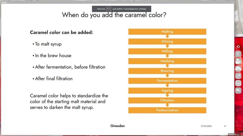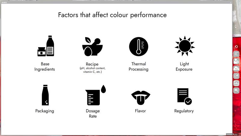 Фахівці запевнили слухачів, що світовий рух за низький рівень алкоголю зростає, тому багато споживачів звертаються до варіантів із меншим вмістом алкоголю, щоб втамувати спрагу, оскільки все більше усвідомлюють зв’язок між тим, що вони їдять і п’ють, і загальним станом здоров’я. Однак вони все ще жадають унікальних і захоплюючих вражень від слабоалкогольних напоїв. Натуральні кольори є ідеальним рішенням, щоб надати споживачам яскравий і захоплюючий досвід вживання алкоголю, і водночас відповідає вимогам категорії «уважне споживання». Окрім цього, вебінар дозволив слухачам детально ознайомитися з тим, як вибрати правильний колір для інноваційного продукту у технологічному процесі.