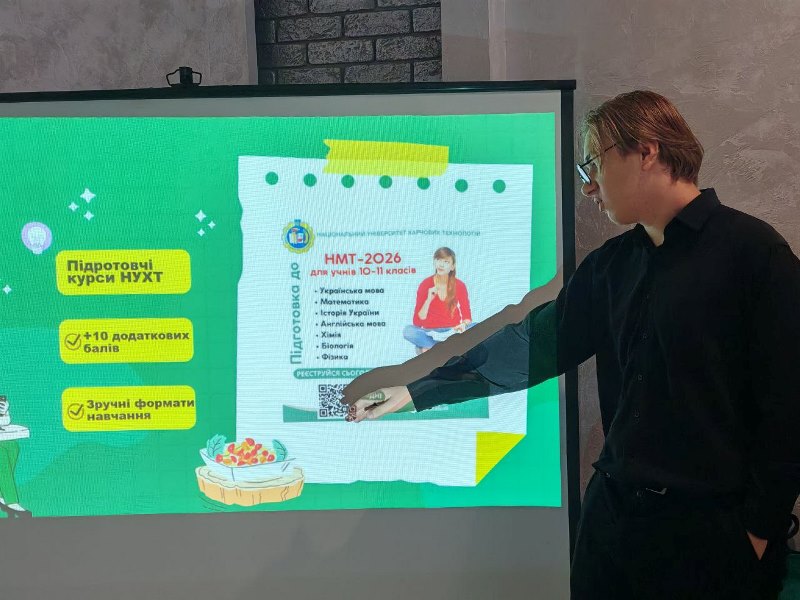 Викладачі презентували освітні програми НУХТ, ознайомили студентів із перевагами навчання, можливостями участі у міжнародних проєктах, конкурсах і програмах академічної мобільності. Особливу увагу було приділено питанням вступу в 2026 році, перспективам подальшого професійного розвитку, кар’єрних траєкторій і формуванню компетентностей, затребуваних на ринку праці.