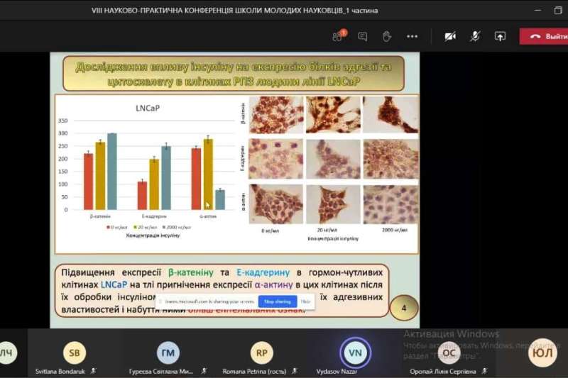Магістрант другого року навчання Назар Видасов представив результати наукової роботи «Вплив гіперінсулінемії на експресію маркерів епітеліально-мезенхімального переходу в клітинах раку передміхурової залози людини».