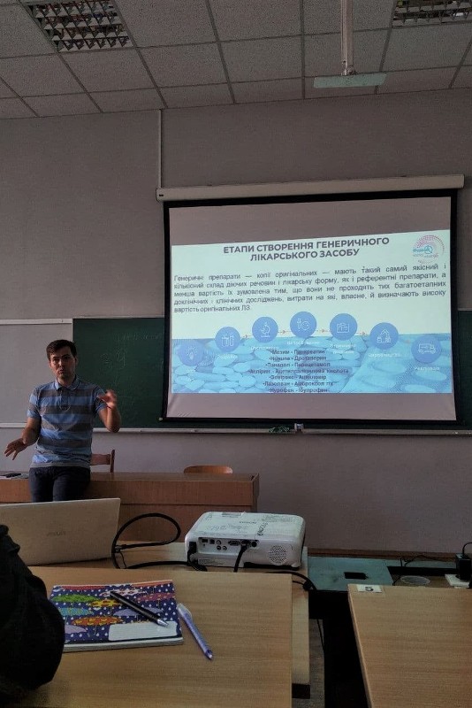 Крім того, лектор розповів про створення генеричних лікарських засобів, які пропонуються як альтернатива інноваційним препаратам. Вони містять ті ж активні інгредієнти, що й оригінальні інноваційні препарати, і, як правило, доступні в таких самих дозуваннях, як і оригінал: «Мезим»-«Панкреатин», «Но-шпа»-«Дротаверин». Генеричні компанії пропонують лікарські засоби за значно нижчими цінами, ніж виробники оригінальних препаратів, оскільки вони не займаються розробленням ліків «з нуля» та проведенням довготривалих дороговартісних токсикологічних і клінічних досліджень, які вже були проведені виробниками оригінальних ліків.