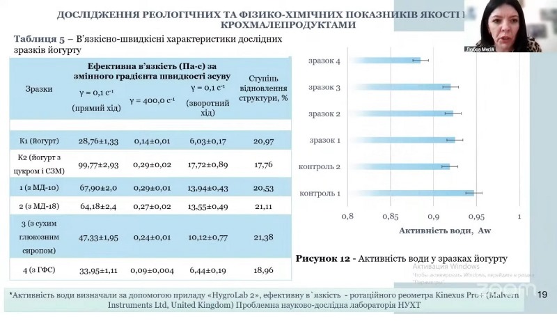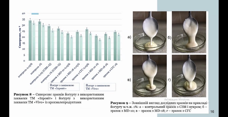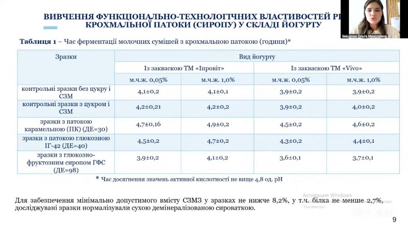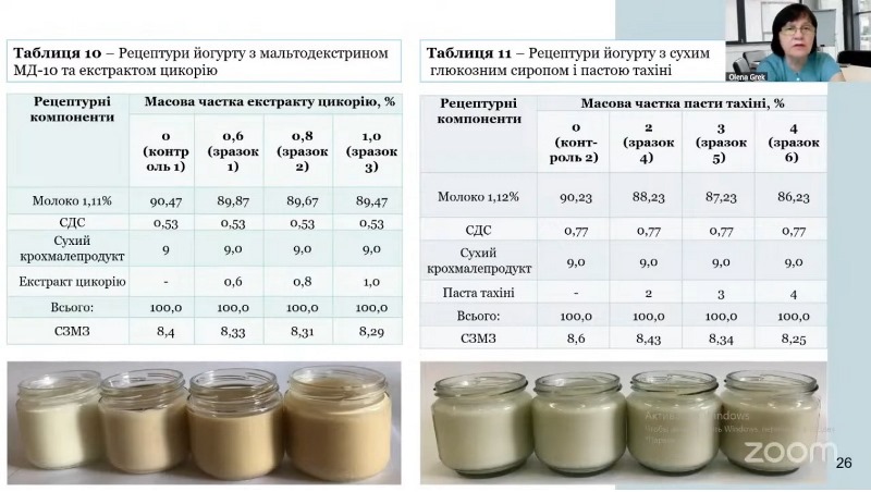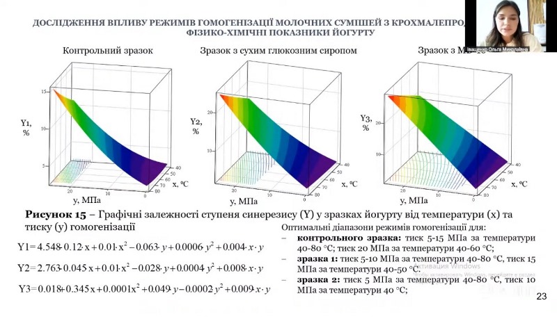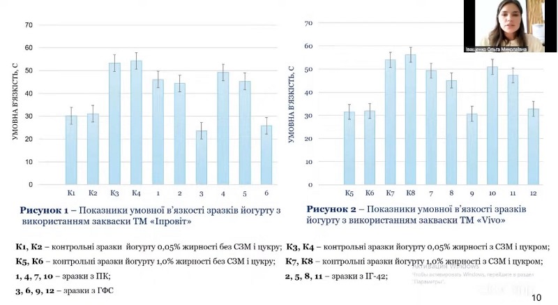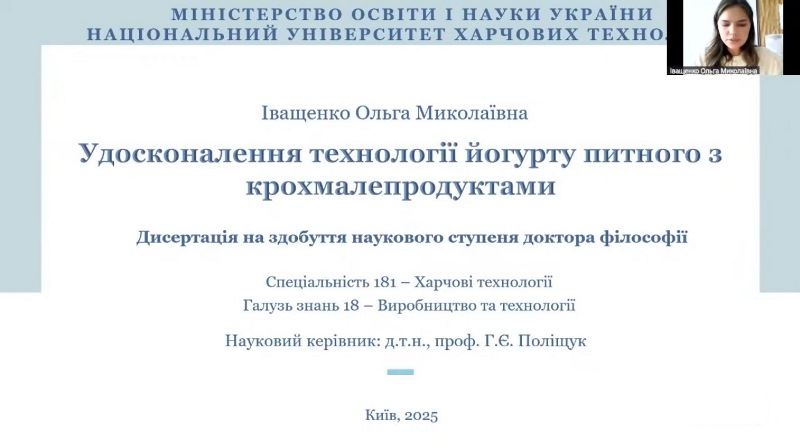 Своє дослідження за темою «Удосконалення технології йогурту питного з крохмалепрдуктами» Ольга Іващенко виконала під науковим керівництвом завідувачки кафедри, д.т.н., професорки Галини Поліщук.