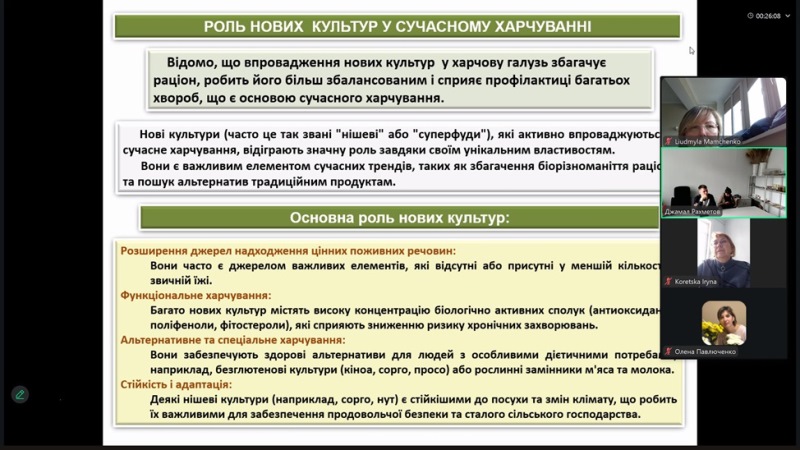 Кафедра технології ресторанної і аюрведичної продукції разом із відділом культурної флори Національного ботанічного саду імені С.М. Гришка Національної академії наук України провели уже традиційний осінній науковий семінар. Від Національного ботанічного саду співорганізаторами івенту виступили вчений секретар, науковий співробітник відділу, к.б.н. Олександр Бондарчук і молодша наукова співробітниця відділу Світлана Рахметова.