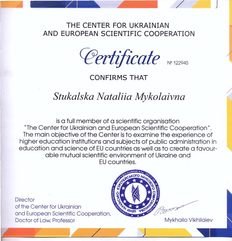 Викладачі кафедри технології ресторанної і аюрведичної продукції Олег Кузьмін, Андрій Мурзін, Марія Омельченко, Володимир Польовик, Наталія Стукальська протягом останніх років увійшли до складу наукової організації «Центр українсько-європейського наукового співробітництва» (ЦУЄНС), що відкриває нові перспективи розвитку їх наукової діяльності та розширення міжнародних зв’язків.