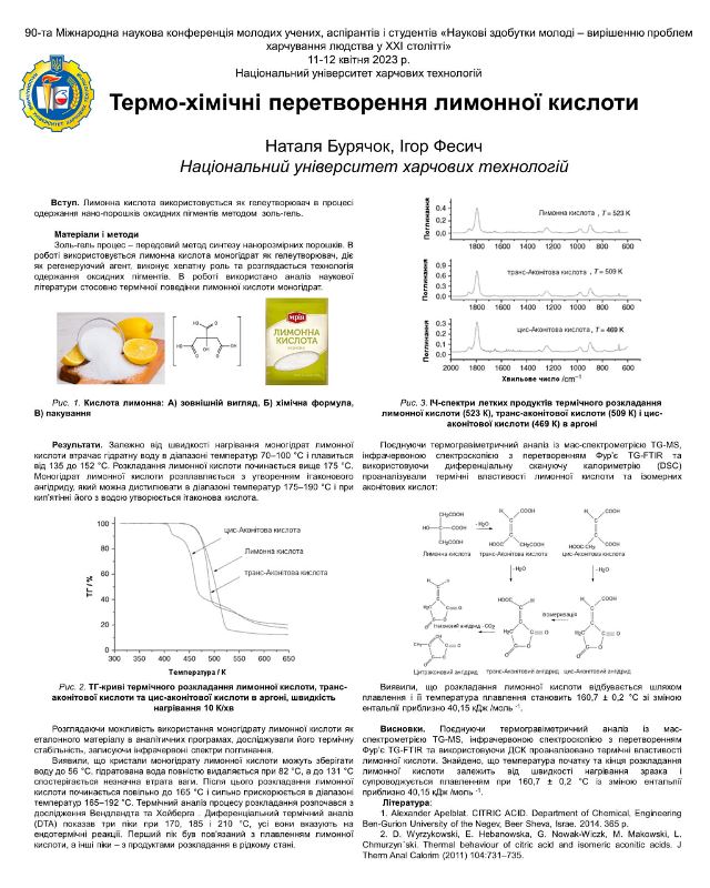 1 місце – Наталія Бурячок (група ЗХТ-1-1М) за доповідь «Термо-хімічні перетворення лимонної кислоти» і Богдана Гонсіровська (ДВНЗ «Український державний хіміко-технологічний університет») за доповідь «Порівняльна характеристика відбілюючих компонентів у кремах для обличчя»
