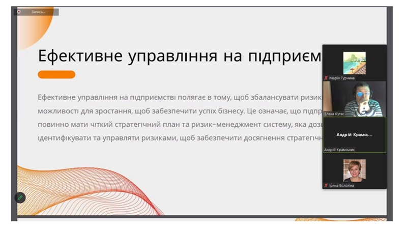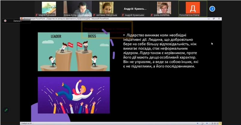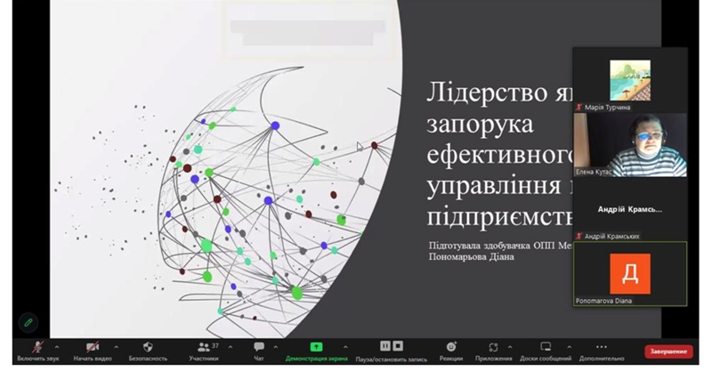 1 місце – Діана Пономарьова (група МН-2-7). Тема доповіді – «Лідерство як запорука ефективного процесу управління на підприємстві» (керівниця – старша викладачка Олена Кутас.).
