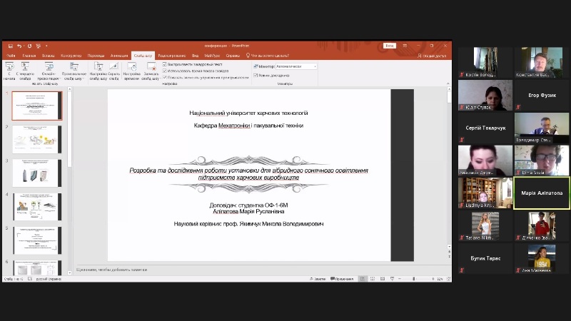 3 місце – здобувачка освітнього ступеня «магістр» Марія Аліпатова з науковою роботою «Розробка та дослідження роботи установки для гібридного сонячного освітлення підприємств харчових виробництв» (науковий керівник – д.т.н., професор Микола Якимчук).