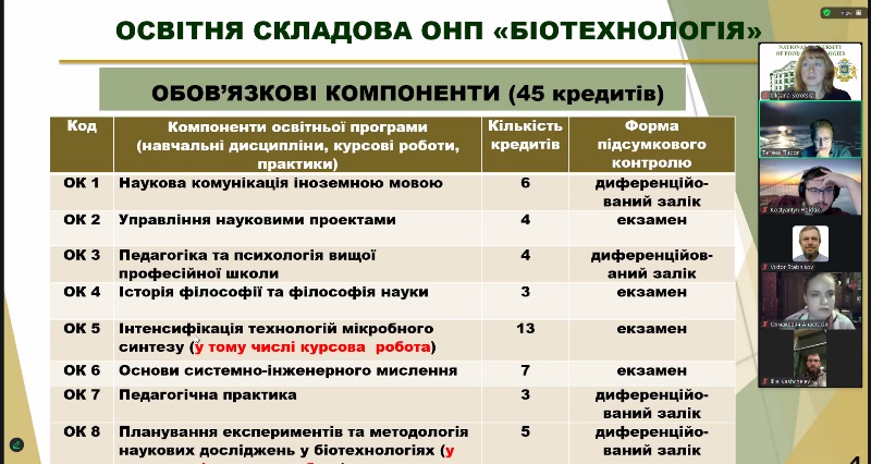 2 жовтня на кафедрі біотехнології і мікробіології відбулася зустріч здобувачів першого року навчання освітньо-наукового ступеня «доктор філософії» спеціальності G21 «Біотехнології та біоінженерія» з гаранткою освітньо-наукової програми «Біотехнологія», професоркою Тетяною Пирог. До зустрічі доєдналися члени робочої групи програми – завідувач кафедри, професор Віктор Стабніков і доцентка Оксана Скроцька.
