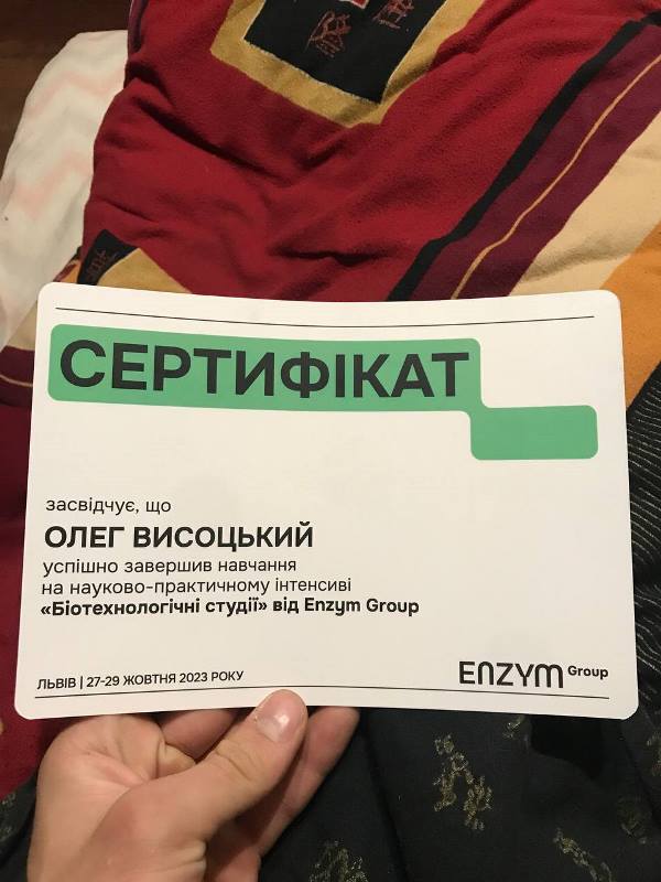 Здобувачі бакалаврату 3 та 4 курсів спеціальності 162 «Біотехнології та біоінженерія» Олег Висоцький і Єлизавета Дон взяли участь у тривалому та плідному науково-практичному інтенсиві від Enzym Group та компанії Explogen в одній із провідних лабораторій України.