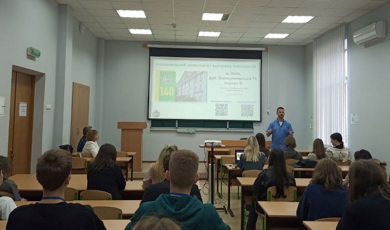 Наступною зупинкою став факультет біотехнології та екологічного контролю. На кафедрі біотехнології і мікробіології за участі асистентки Ірини Ковшар, старшої викладачки Тетяни Сулейко та третьокурсниць спеціальності «Біотехнології та біоінженерія» Юлії Самсонової й Анастасії Сахневич відбувся цікавий і пізнавальний майстер-клас, присвячений харчовій біотехнології. Старшокласники дізналися про харчові продукти біотехнологічного виробництва, серед яких – комбуча, квас, хліб, кисломолочні продукти тощо. Після теоретичної частини учні отримали унікальну можливість самостійно налаштувати світлові мікроскопи та дослідити препарати Saccharomyces cerevisiae – культури дріжджів, що широко застосовується у харчових технологіях. Також ліцеїсти отримали детальну та актуальну інформацію про спеціальність «Екологія» від доцентки кафедри фізики та професійної безпеки Аліни Сірик.