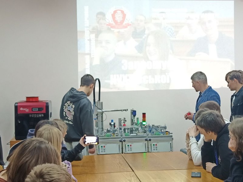 Під час майстер-класу, проведеного Романом Якобчуком, ліцеїсти мали унікальну можливість ознайомитися з будовою та роботою навчальної модульно-виробничої системи (MPS) компанії «Фесто» для переміщення та сортування виробів. Викладач продемонстрував, як інтелектуальні системи на базі передової механіки та електроніки здатні ефективно виконувати завдання.