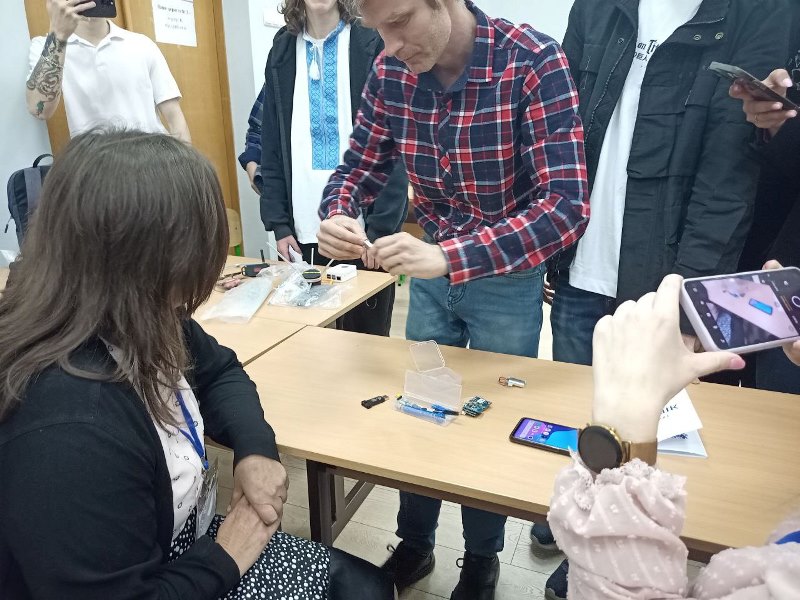 Далі на наших гостей очікувало знайомство з факультетом автоматизації і комп’ютерних систем. Тут доцент кафедри інформаційних технологій, штучного інтелекту і кібербезпеки Андрій Мошенський провів цікавий майстер-клас «Використання Інтернету речей для створення розумного будинку», під час якого всі присутні мали змогу створити кінцевий пристрій, сенсор для системи Інтернету речей на базі безпроводових сенсорних мереж на устаткуванні Espressif та Semtech. Крім того, завідувач кафедри Сергій Грибков і доцент кафедри автоматизації та комп'ютерних технологій систем управління ім. проф. А.П. Ладанюка Володимир Полупан провели екскурсії лабораторіями випускових кафедр факультету.
