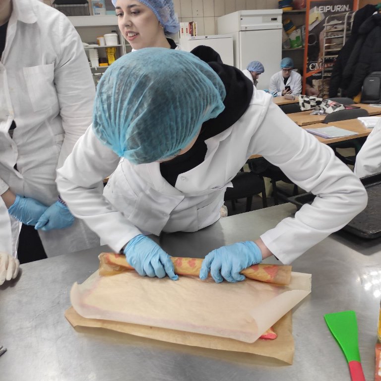 Заняття було присвячене вивченню технології тортів і тістечок на основі бісквітного напівфабрикату і відпрацюванню професійних навичок формування бісквітних рулетів із різноманітним оздобленням.