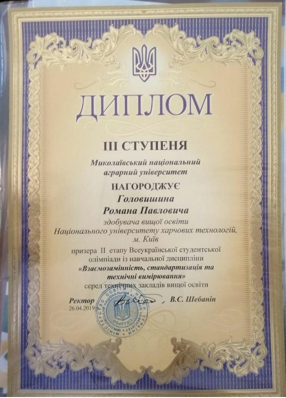 У другому етапі Всеукраїнської олімпіади з «Взаємозамінності, стандартизації і технічних вимірювань» студент Роман Головишин (керівник – професор Олександр Литвиненко) зайняв ІІІ місце, а Андрій Горайчук одержав грамоту за високі теоретичні знання під час комп’ютерного тестування.