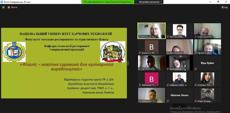 Магістрантка 1-го року навчання спеціальності 181 «Харчові технології» освітньо-професійної програми «Технології в ресторанному господарстві» Анастасія Воробйова (керівниця – доцентка Ірина Корецька) представила доповідь «Фізаліс – новітня сировина для кулінарного виробництва», в якій обґрунтувала перспективність і доцільність використання фізалісу в технології десертів задля покращення їх фізико-хімічних властивостей та підвищення харчової цінності.