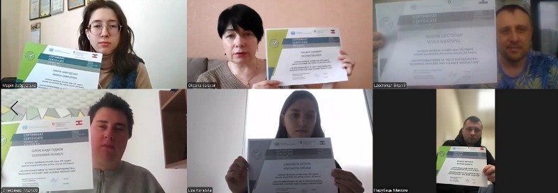 Здобувачі-магістранти освітньо-професійної програми «Екологія, екоменеджмент та екоаудит» Єлизавета Шеліна, Марія Забрудська, Аліса Козакова, Олександр Гудков, Віталій Шестопал, Максим Парубець, Ілля Кукарцев, Арсен Таран та Юрій Монджиєвський успішно завершили онлайн-курс «Ресурсоефективне та чисте виробництво» й отримали не лише актуальні для майбутньої професійної діяльності знання, але й підтверджуючі це сертифікати.