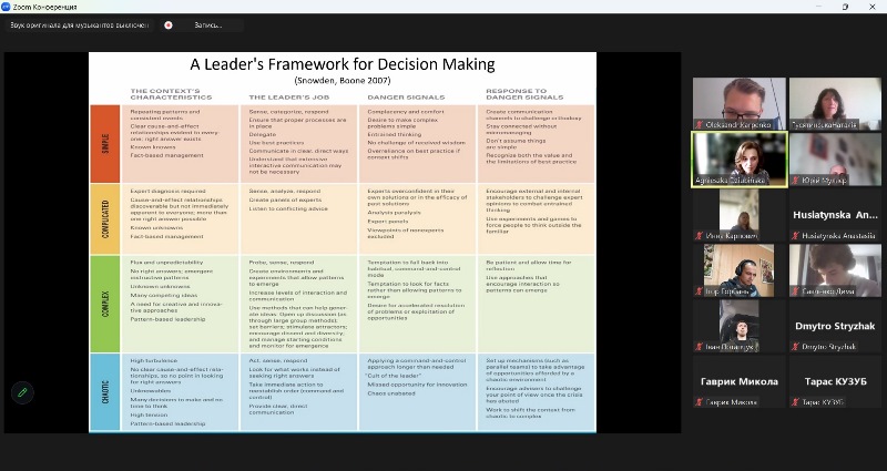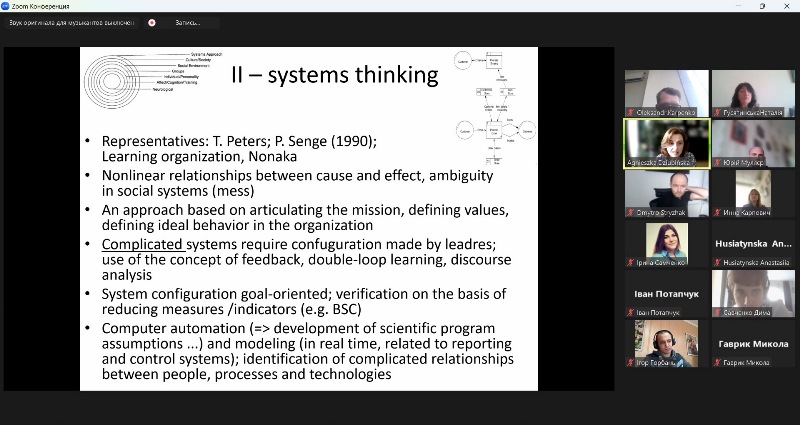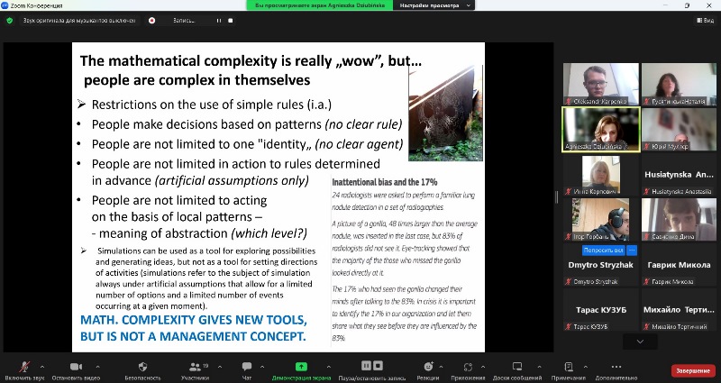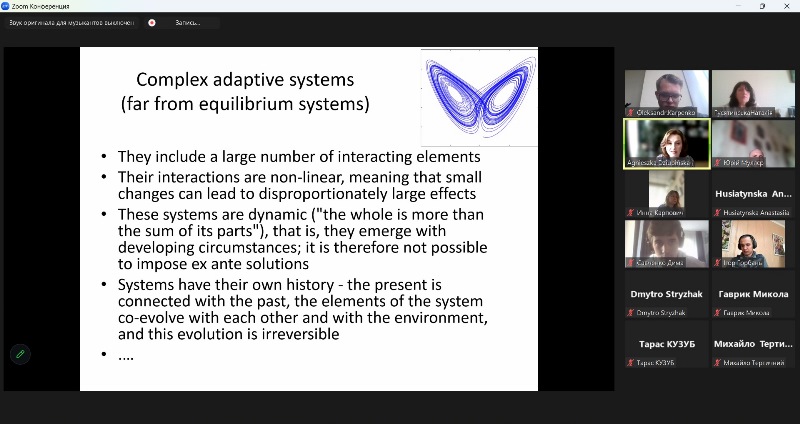 Лекція включала такі основні питання: Development of the assumptions of scientific programs; Research streams in the social sciences (with particular emphasis on organization and management sciences); System design; Systems thinking; Mathematical complexity; Contextual / social complexity; Heuristics supporting actions in domains: order, complex, chaotic.