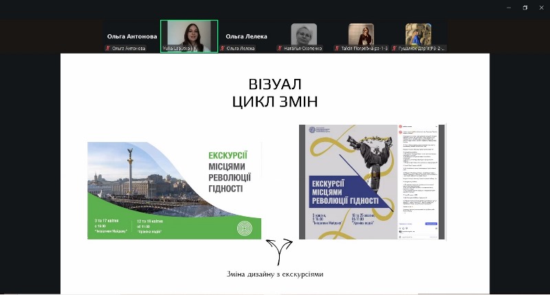 Здобувачі освітніх програм «Реклама та зв’язки з громадськістю», «Маркетинг», «Підприємництво, торгівля та біржова діяльність» освітніх рівнів «бакалавр» і «магістр» дізналися, як сьогодні музей перетворюється на медіа, працює з цінностями і створює комунікації, що резонують із суспільством. Юлія Лапутько навела реальні приклади з роботи команди Музею Майдану – від подій до digital-контенту.