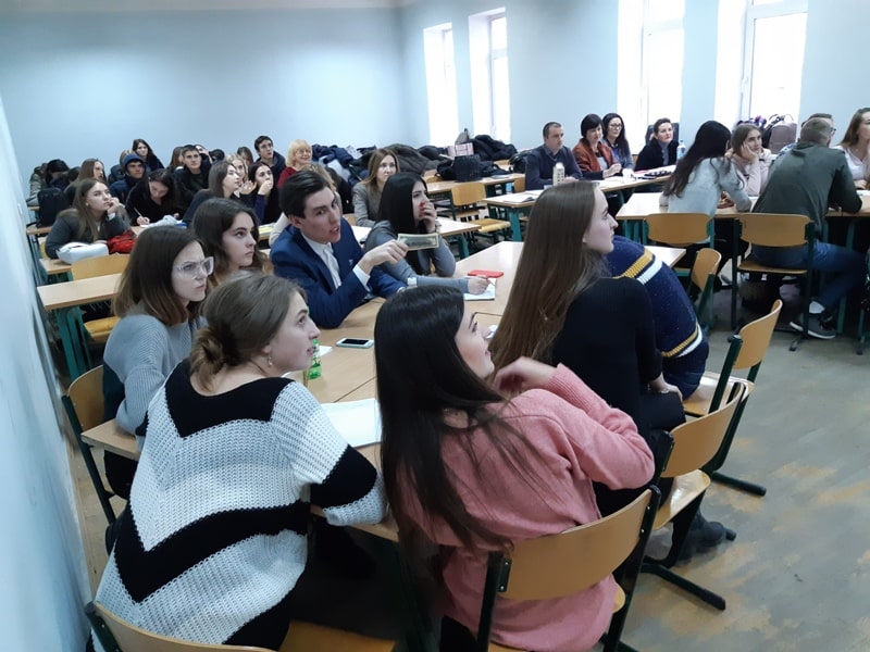 Нестандартне заняття у формі конкурсу разом зі студентами-фінансистами третього курсу провела викладач кафедри Світлана Еш. Дві команди змагалися між собою, хто краще представить себе на фінансовому ринку, яка із них краще знає фінансові категорії, яка кмітливіша, розумніша та покаже цікаві знання з дисципліни «Фінансові ринки та інститути». Обидві команди показали хороші знання і отримали від журі достойні бали.