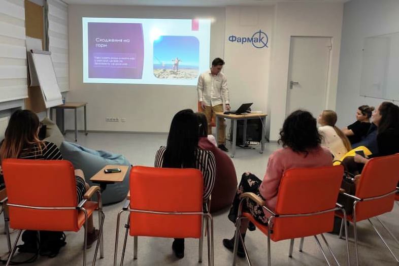 І ось настав день «Х»: наші студенти вирушили в «бій» до компанії, де потрапили у дуже привітну атмосферу, яка налаштовує будь-кого на приємну співбесіду. Учасників зустрів привітний персонал, ознайомив із історією АТ «Фармак» і зародженням ідеї проекту «Амбасадор». Надалі відбулися невеличкі доповіді усіх учасників та вручення подарунків із логотипом підприємства.