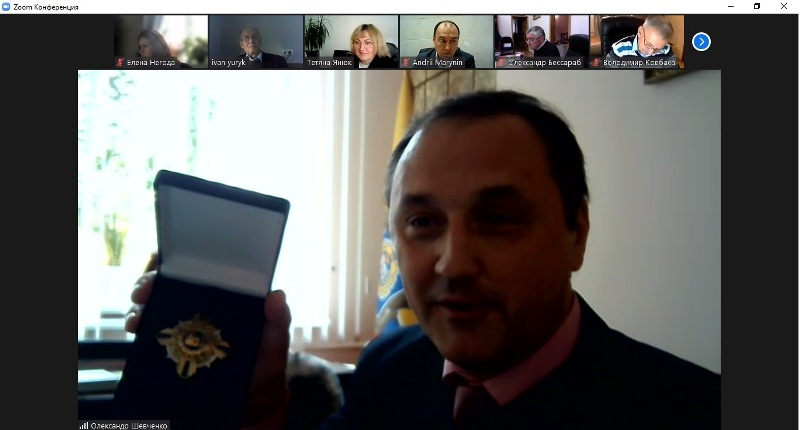 Розпочали традиційно, привітавши колег, що відсвяткували дні народження між засіданнями. Далі ректор Олександр Шевченко оголосив наказ про нагородження завідувача кафедри вищої математики ім. проф. Можара В.І. Івана Юрика нагрудним знаком «За академічні заслуги».