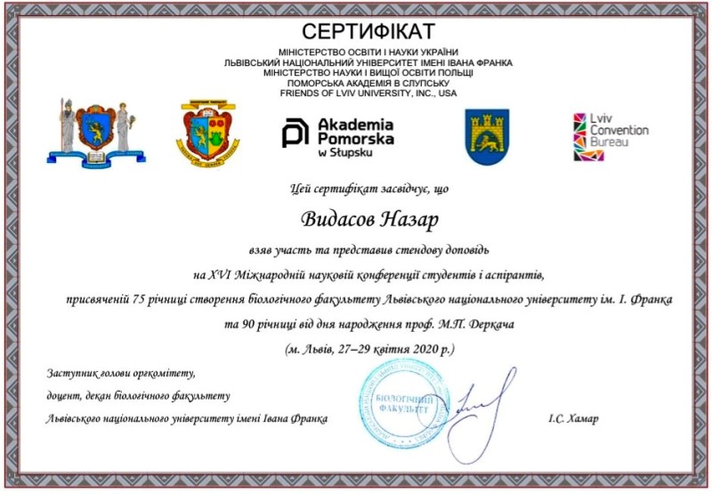 Сучасні реалії диктують нам нові умови життя. Вміння швидко адаптуватися до будь яких змін і раціонально використовувати свій час – це якості, якими має володіти успішна людина. Так, за період карантину, кожний із нас отримав можливість зрозуміти, що для нього важливо, та чим би він чи вона хотіли займатись далі. А от магістрантом І-го року навчання кафедри біотехнології і мікробіології Назаром Видасовим вибір був зроблений вже давно. За період карантину він ще раз переконався, що здобуває ту освіту, до якої лежить душа та займається улюбленою справою. Можливо тому навчання в дистанційній формі, захист робіт у форматі онлайн-конференцій не стали важким випробуванням, скоріше це був цікавий досвід, який буде корисний у майбутньому.