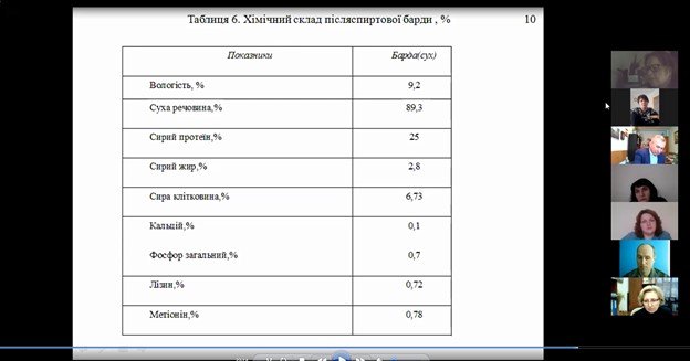 Мирослава Кожевнікова представила на розгляд дисертаційну роботу «Удосконалення технології виробництва екструдованих кормів з використанням нетрадиційної сировини», в якій розглядаються питання використання гарбуза та післяспиртової барди.