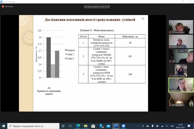 Маргарита Кожевнікова представила на розгляд дисертаційну роботу «Технологія виробництва комбікормів з використанням сировини олійних культур», в якій розглядаються питання створення кормовий сумішей на основі зернових та олійних культур із додаванням водних розчини лугів.